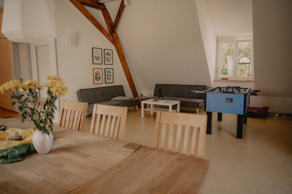 Den Kindern und Jugendlichen stehen in der Regel großzügige Einzelzimmer zur Verfügung. Die Küchen, der Wohn- Esszimmerbereich und die sanitären Anlagen werden gruppenbezogen gemeinsam benutzt. Die jungen Menschen werden angeleitet zunehmende Selbständigkeit zu erlangen und sind in die tägliche Essenszubereitung und den Einkauf maßgeblich einbezogen. Für die Sauberkeit und Pflege der Zimmer und der gemeinsam benutzten Räume sind die Kinder und Jugendlichen überwiegend selbst zuständig und übernehmen hierfür Verantwortung.